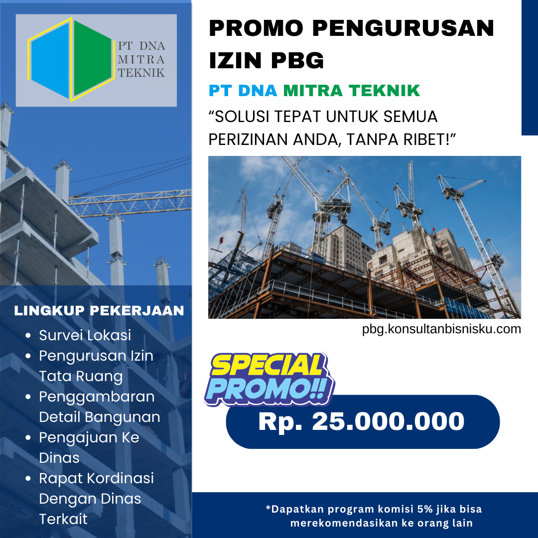 PT DNA MITRA TEKNIK adalah perusahaan konsultan perizinan dan teknis yang menyediakan jasa pengurusan PBG (Persetujuan Bangunan Gedung) sebagai pengganti IMB, untuk berbagai jenis bangunan seperti rumah tinggal, ruko, gudang, pabrik, gedung usaha, hingga kawasan perumahan. Seluruh proses dikerjakan secara profesional, sesuai regulasi terbaru, dan melalui sistem perizinan resmi pemerintah.